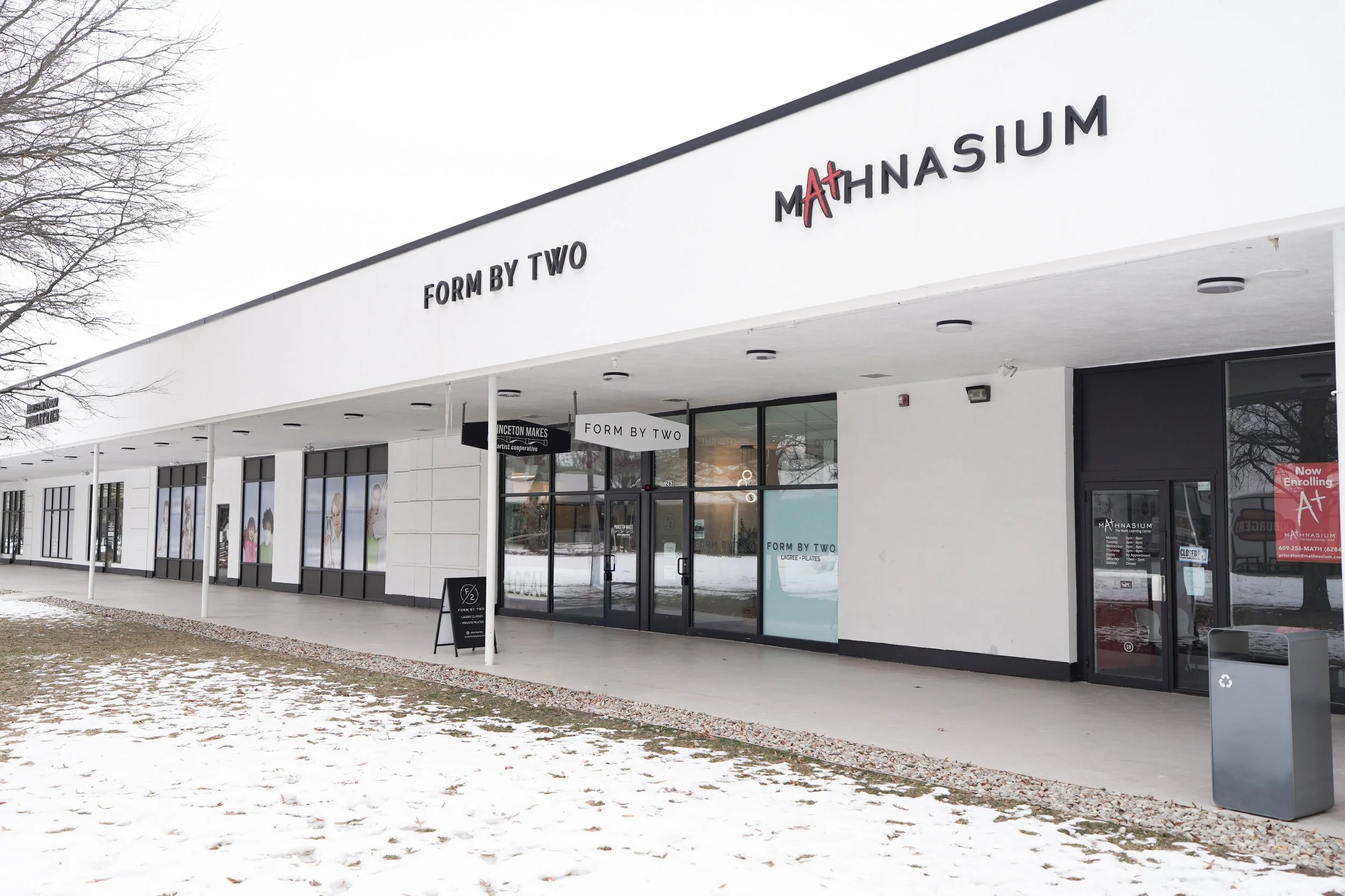 We are located in the courtyard of the Princeton Shopping Center.